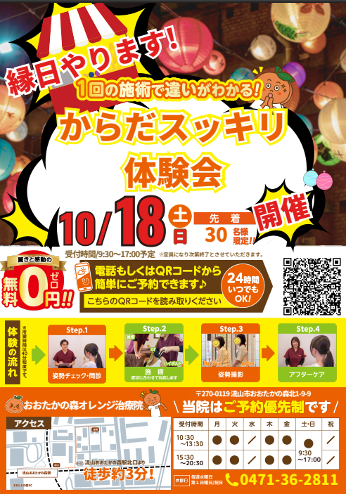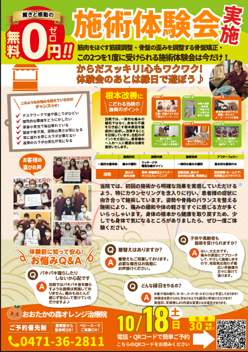 10月無料施術体験会のお知らせ!先着30名!